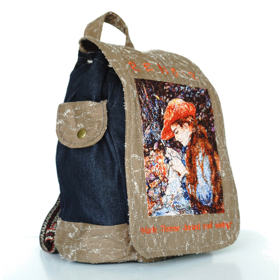 La principal característica de la TISSUS SACK ARTWORK es el bordado de una "OBRA DE ARTE" en la solapa de la mochila, la cuál hace qué tu bolsa sea única; así como también las telas con las qué está fabricada, las cuales tienen un colorido y una textura qué harán qué quedes bastante satisfecha con la calidad de tu bolsa.